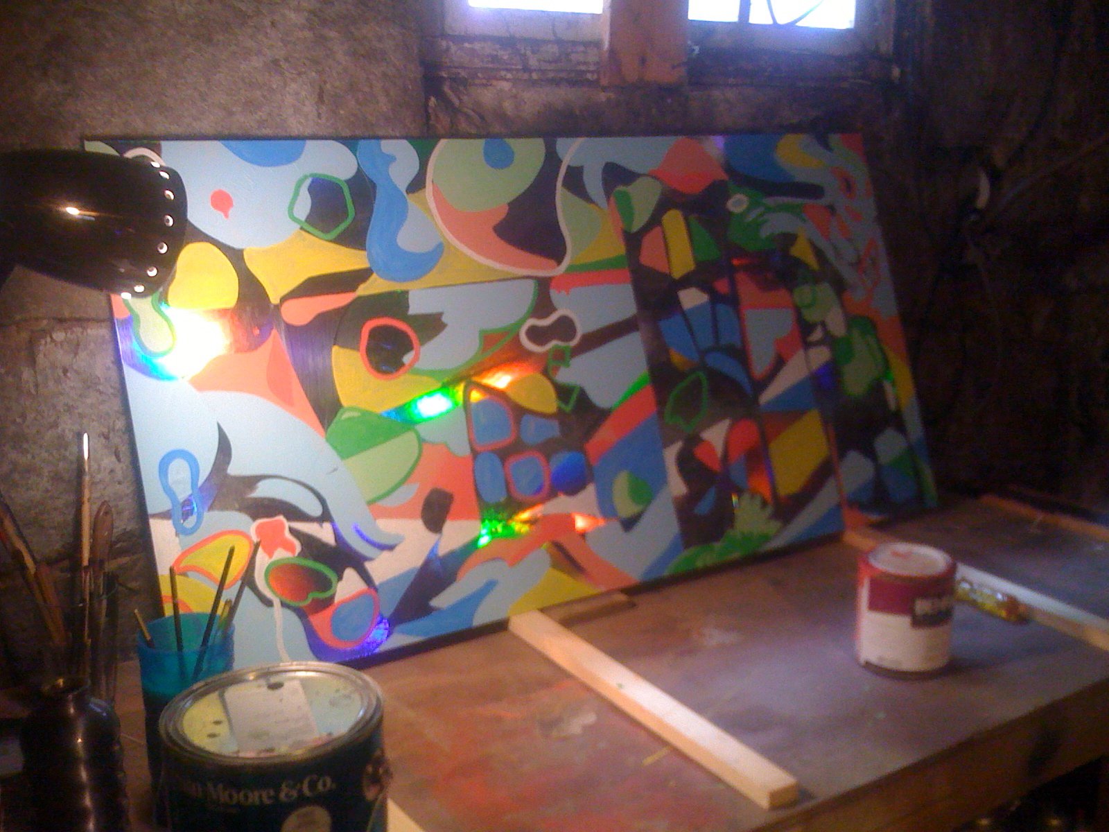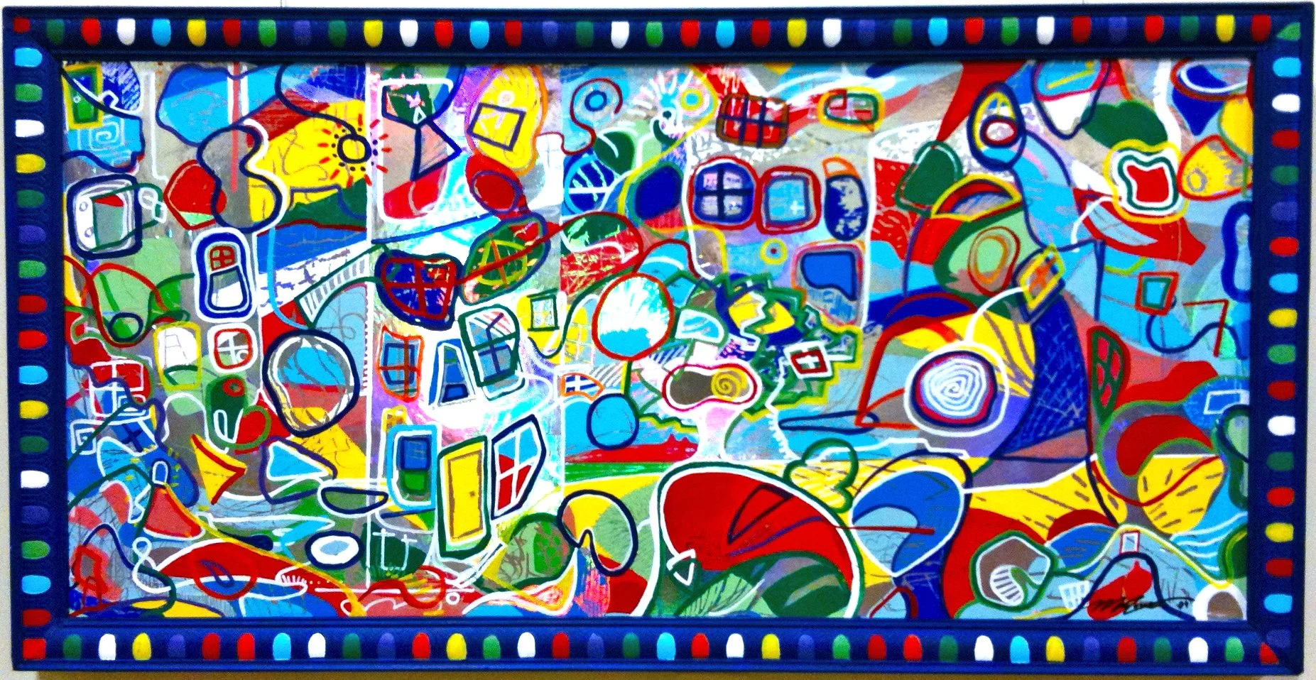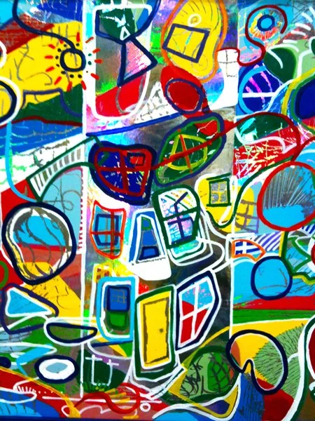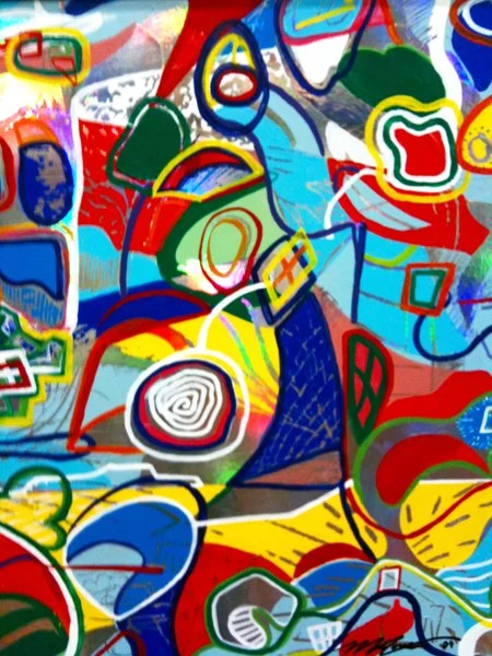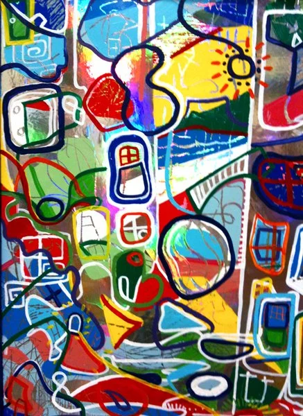 In 2009, Mac created a new series of holographic paintings which included Awesometown, which was inspired by the pilot for a sketch comedy show by The Lonely Island team on Fox that was never picked up and never aired. The comedy was irreverent, creative, and groundbreaking. “I thought there was something special and unique about the energy of the show,” says Mac. “I thought it would be cool to try to create a work of art that was similarly juxtaposed against cultural and media norms. I was pleasantly surprised as the painting started to develop and took inspiration from Friedensreich Hundertwasser, one of my mother’s favorite painters.”